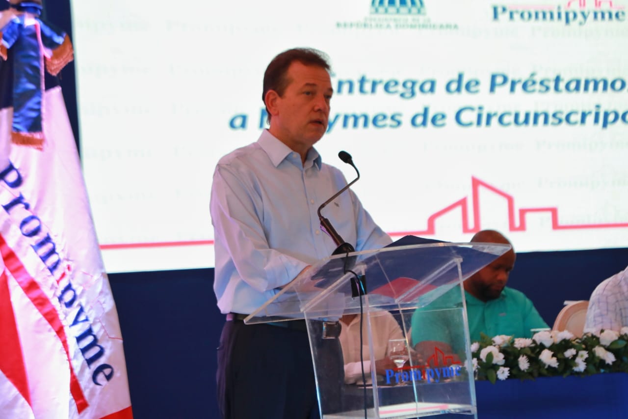 Mientras el ministro Victor-Ito-Bisonó Haza señalo que la cantidad de préstamos otorgada a los beneficiarios “salva mil 400 empleos directos”, el director general de Promipyme, Porfirio Peralta, agradeció la presencia del Ministro de Industria y Comercio en la importante entrega de financiamnientos, al tiempo de exhortar a los emprendedores enfocarse en hacer crecer sus negocios, seleccionar bien su personal, tener objetivos claros, vocación de servir y transparencia.