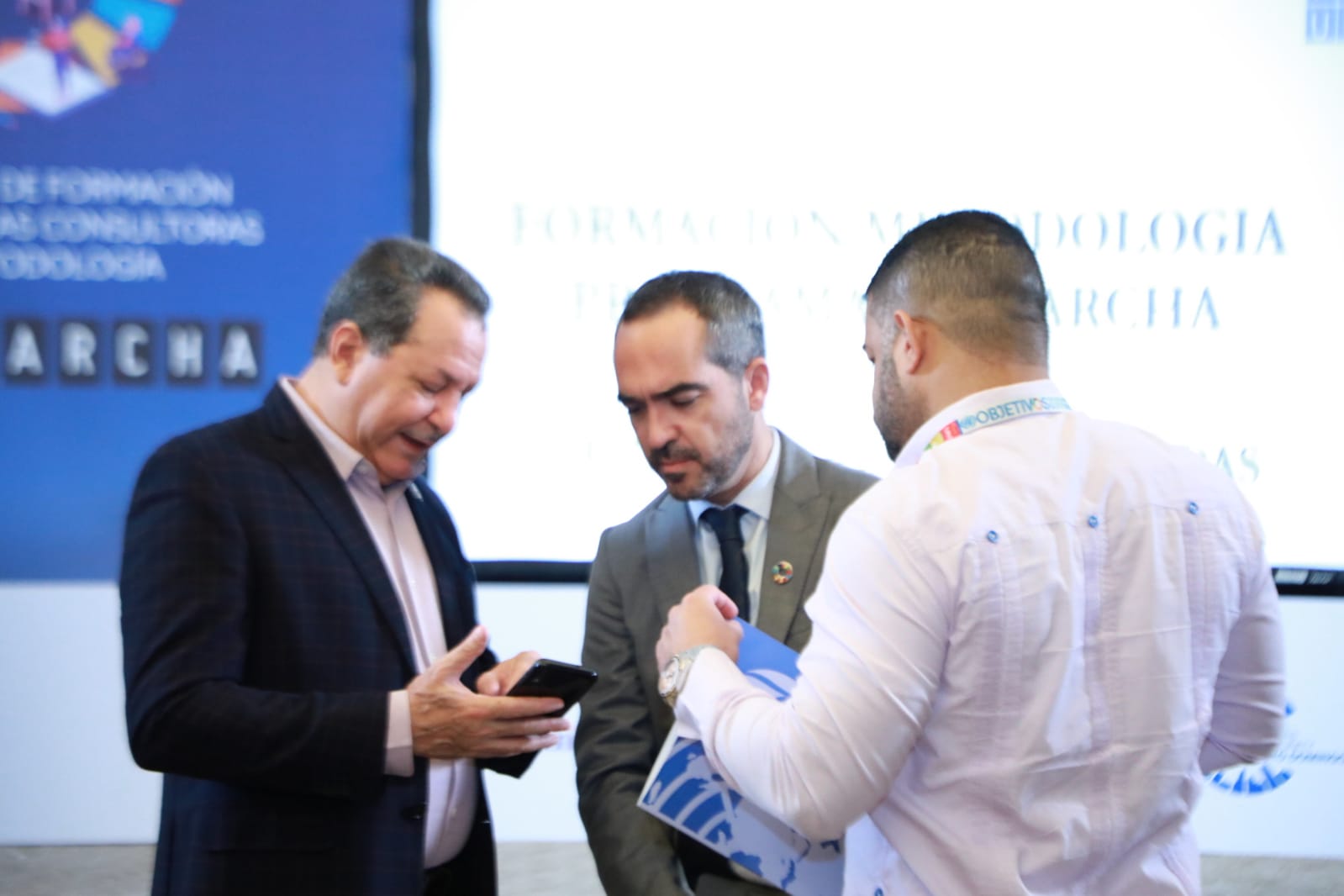 Distrito Nacional.- El Consejo Nacional de Promoción y Apoyo a la Micro, Pequeña y Mediana Empresa (Promipyme), el Ministerio de Industria y Comercio (MICM), la Cámara de Comercio y Producción de Santo Domingo, Global Shapers Santo Domingo y el Programa de las Naciones Unidas para el Desarrollo (PNUD) iniciaron hoy las capacitaciones de personas consultoras de negocios para aplicar la metodología del Programa En Marcha en el país.