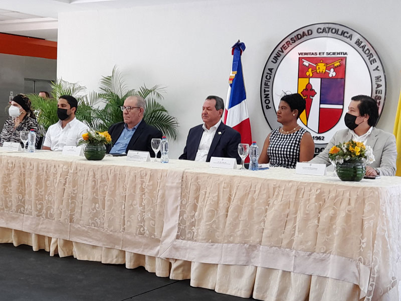 Durante el acto de graduación la mesa principal estuvo presidida, además, por el vicerrector académico doctor David Álvarez; Jesús Paniagua, secretario general de la Comisión Nacional Dominicana para la Unesco; Támara Mera, directora de la Escuela de Negocios; Rosa Ysabel Ruiz, docente de la Escuela de Negocios PCMM; Víctor Wilfredo Bohórquez, docente e investigador PCMM.