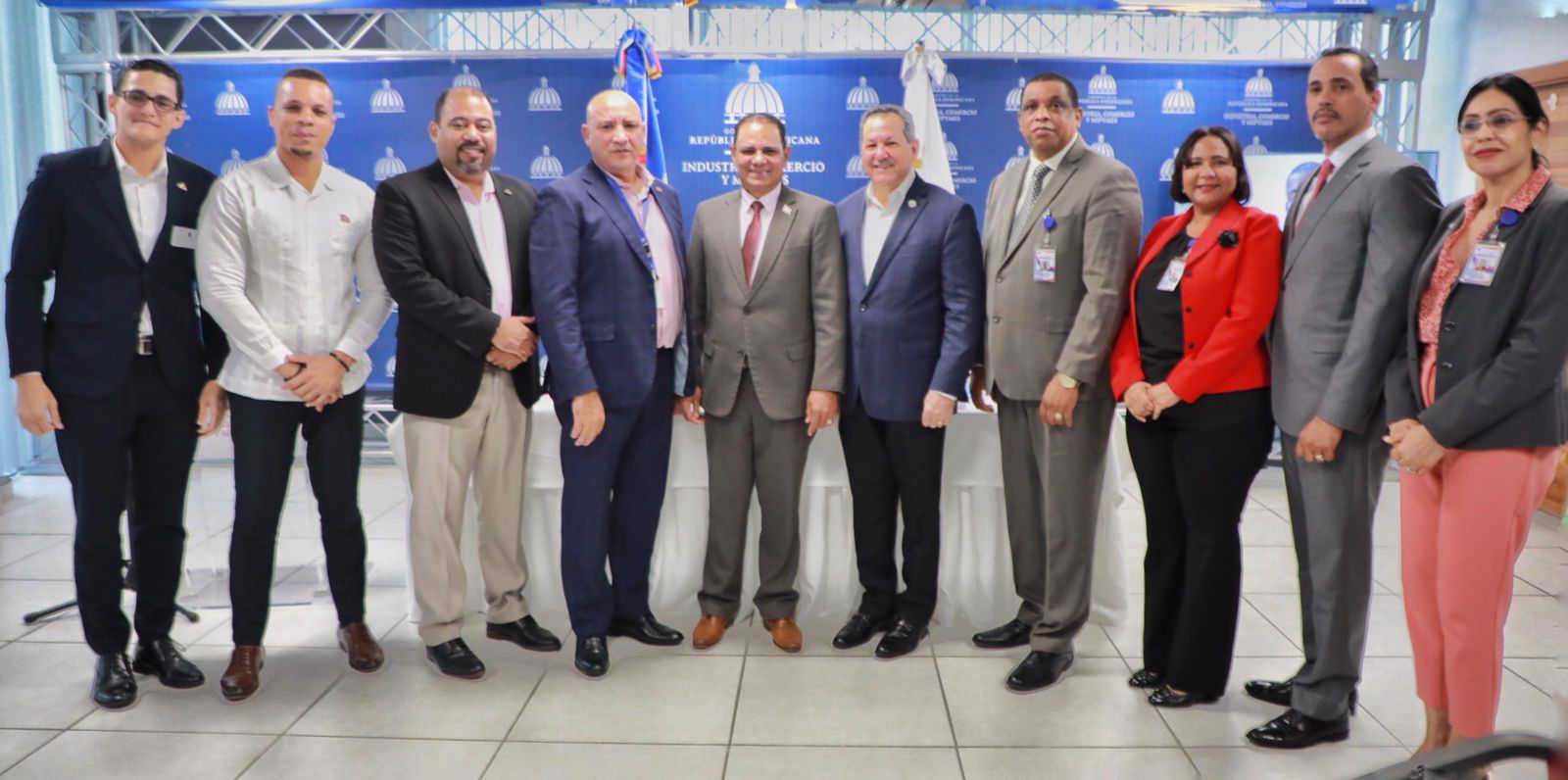 A la apertura de la jornada de Industria y Comercio acompañaron al director general de Promipyme: Wagner Jiménez, subdirector de Créditos y Recuperaciones; Leonardo Tellería, director de Gabinete; Milagros Vázquez, directora de Gestión Humana; Israel Castillo, gerente Subdirección Gestión y Desarrollo; Ana Rosalía Pérez, encargada de Capacitación RRHH; Rosa Disla, gerente de Programas Especiales de Crédito.