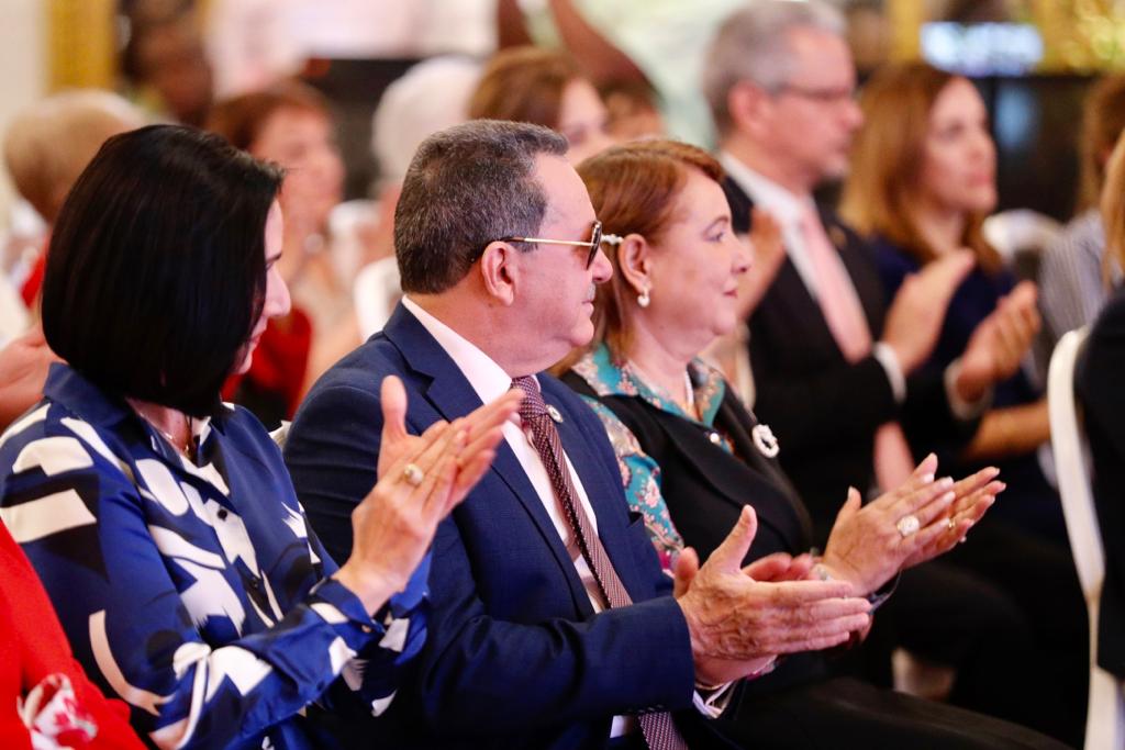 Santo Domingo. La primera dama Raquel Arbaje y el director general del Consejo Nacional de Promoción y Apoyo a la Micro, Mediana y Pequeña Empresa (Promipyme) Porfirio Peralta, rindieron homenaje a la estilista dominicana Daisy Castillo de Rondón por su destacada trayectoria como emprendedora.