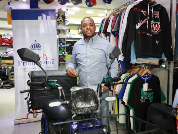 Santo Domingo.-En nombre del director del Consejo Nacional de Promoción y Apoyo a la Micro Pequeña y Mediana Empresa, Promipyme, Porfirio Peralta, se hizo entrega de un motor eléctrico al micro empresario Pedro Luis Solano, propietario de la pequeña tienda Full Locker, ubicada en el sector Buenos Aires de Herrera, Santo Domingo Oeste.