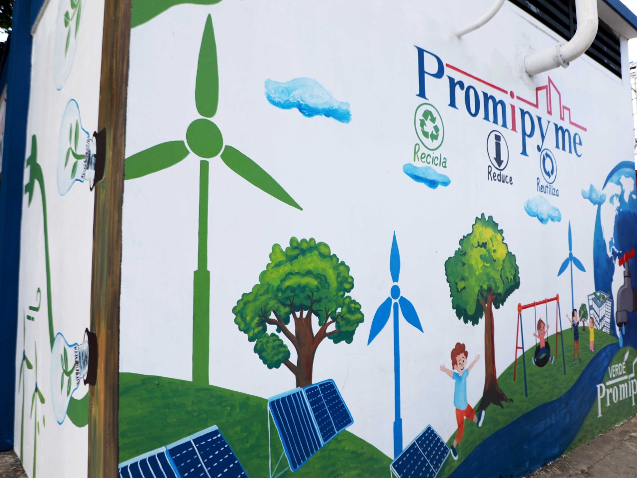 Santo Domingo.- En un emotivo acto, el Consejo Nacional de Promoción y Apoyo a la Micro, Pequeña y Mediana Empresa (PROMIPYME), el Departamento de Gestión Medioambiental, inauguró este viernes, "Punto Verde Promipyme" y develó tres murales medioambientales, ubicados en la parte frontal de la sede principal, de la avenida 27 de febrero del Distrito Nacional.