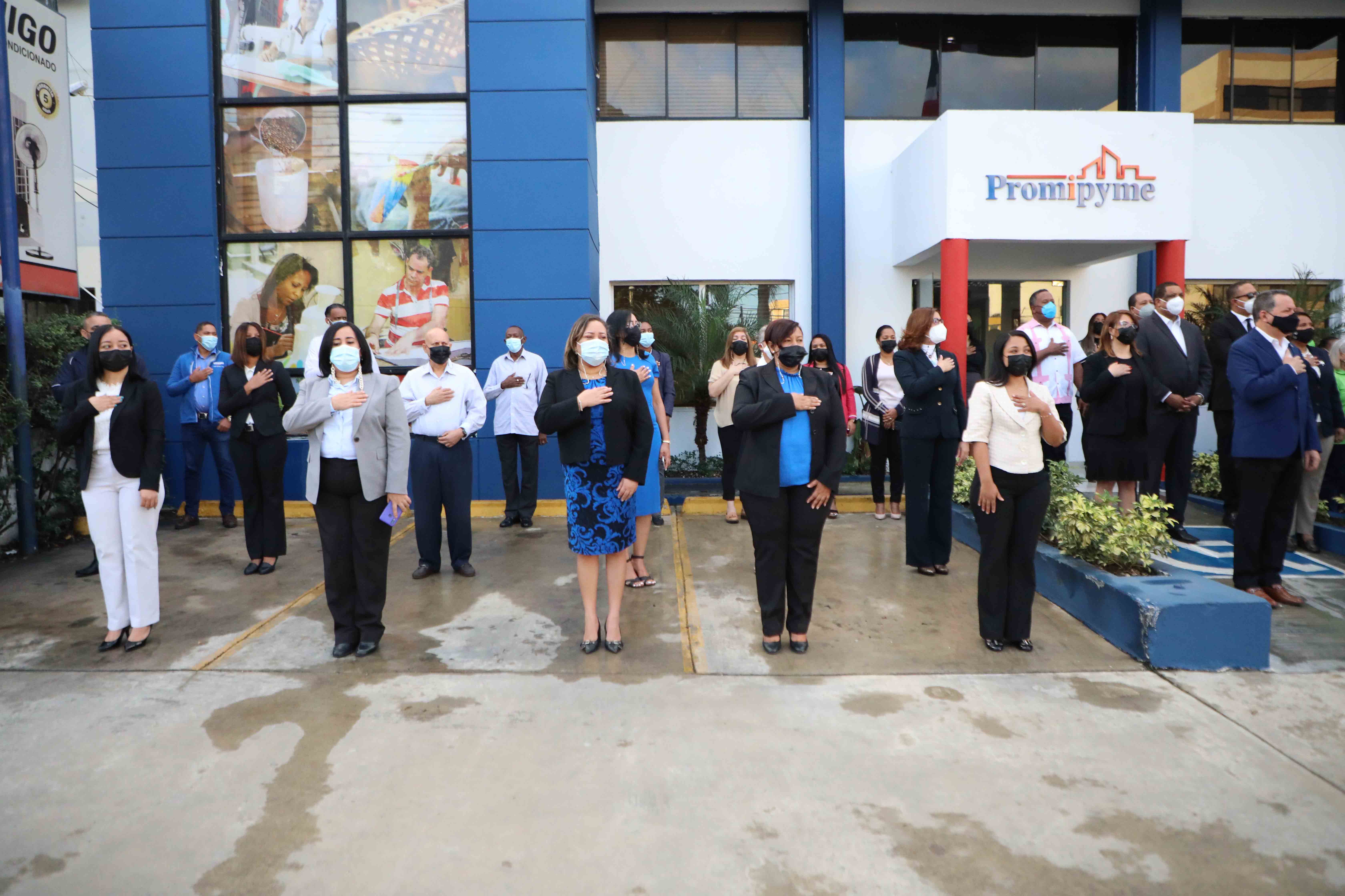 Santo Domingo.-Porfirio Peralta, director del Consejo Nacional de Promoción y Apoyo a la Micro, Pequeña y Mediana Empresa junto a todo el personal de Promipyme, celebraron un acto de izamiento de la Bandera Nacional, con motivo de celebrarse este miércoles 26 de Enero, el día del natalicio del patricio Juan Pablo Duarte.