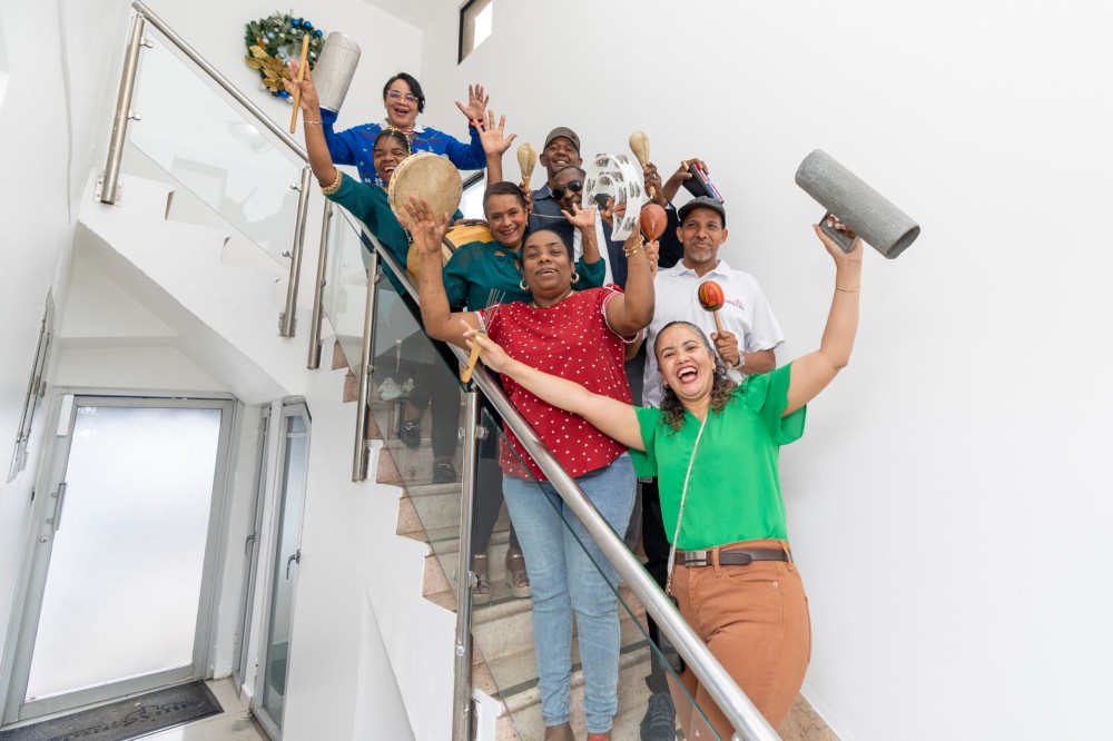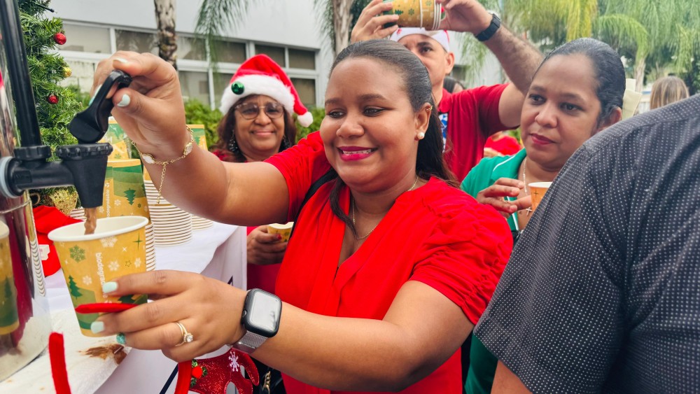 Santo Domingo.-La Navidad llegó a Promipyme con Santa Claus y un brindis de rico chocolate, golosinas y picadera navideña degustadas por los colaboradores que participaron en el encendido del arbolito en medio de chistes, risas y buenos deseos para el Año Nuevo 2025.